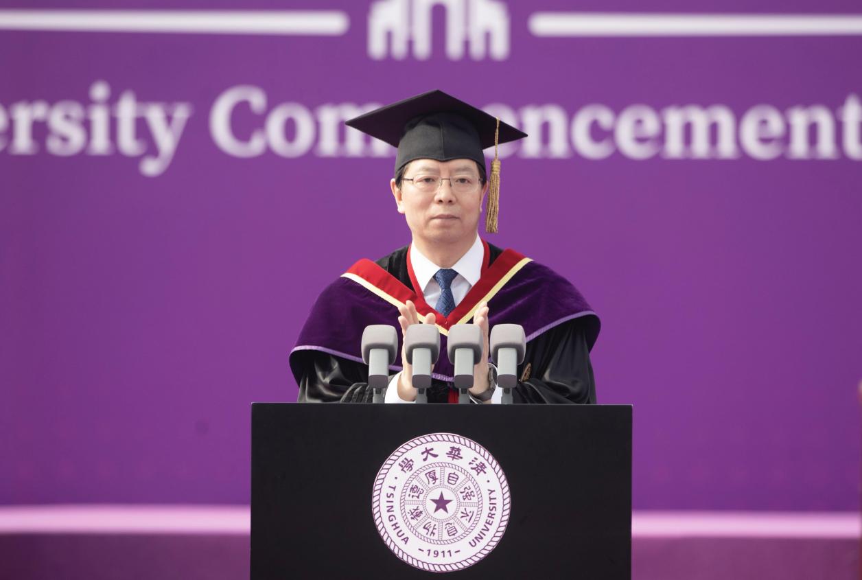 Secretary of the CPC Tsinghua University Committee Qiu Yong announced the decision to commend the excellent PhD and Master's graduates, expressing his expectations and well-wishes for the students. "Dear students, today you are about to embark on a new journey in life. On this challenging yet infinitely scenic path, only through belief, character, and hard work can you steadfastly pursue lofty life goals," he said.
