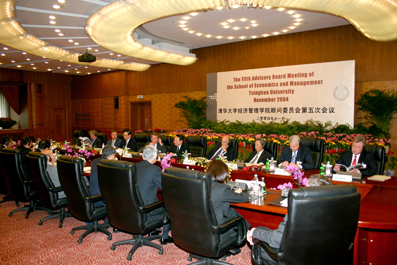 The Fifth Advisory Board Meeting of the School of Economics and Management was held in Tsinghua on November 3. Mr. Zhou Ji, Minister of Ministry of Education, P.R.C., and Tsinghua President Gu Binglin attended the meeting. Mr. Chen Zhili, the State Councilor, Mr. Wang Qishan, Mayor of Beijing, Mr. Ma Kai, Minister of the State Development and Reform Commission, Prof. Chen Xi, President of the University Council, and Prof. Wang Dazhong, Honorary President of the University Council, participated in the related activities of the Advisory Board.