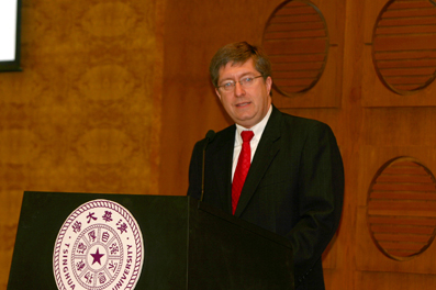 Prof. Lehman delivered a speech titled “Cornell and Tsinghua: Collaborating across Cultures in a Transnational World” in the Reception Hall of the Main Building . He introduced the history and present development of Cornell University , the first hundred years of Cornell's collaboration with China , and the importance of the strategic partnership with Tsinghua University .