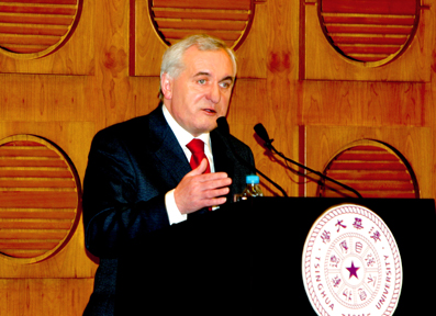 During his speech, Mr. Ahern briefly reviewed the relations between Ireland and China, holding that the two countries are enjoying good relations in the fields such as economy, culture and education. He emphasized the importance of friendship and cooperation to the two countries. Talking about the cooperation in education, he pointed out that the number of young Chinese students in Ireland has grown in recent years.