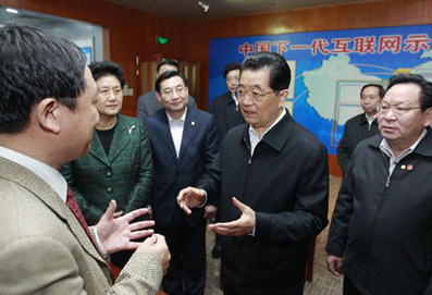 Hu also inspected the university's Network Research Center, which is responsible for developing the next generation of Internet for China, and a center for structural biology.