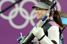 Yi Siling, a student from Tsinghua’s School of Economics and Management, won the first gold medal of the London Olympic Games, as she scored a total of 502.9 points in the women's 10m air rifle title event, on July 28th. |