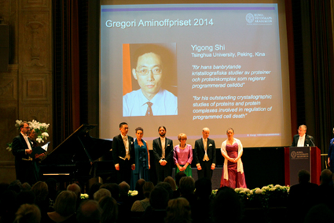 Professor Shi Yigong, Dean of School of Life Sciences, Tsinghua University, was awarded the Gregori Aminoff Prize in Crystallography 2014 at the Royal Swedish Academy of Sciences’ Annual Meeting on March 31. He is the first scientist from China who has won the Prize since it was established in 1979.