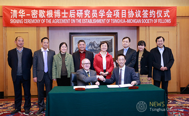 On the same day, the agreement on the establishment of The Tsinghua – Michigan Society of Fellows was jointly signed by Shi Yigong, Vice President of Tsinghua University and James Holloway, vice-provost for global affairs of Michigan University.