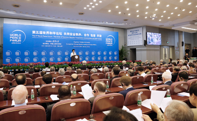 The fifth World Peace Forum was held at Tsinghua University from the 16th to the 17th of July. During the forum, participants held discussions on current global and regional security issues. Chinese Vice Premier Liu Yandong addressed the opening ceremony. Former State Councilor and Chairman of the World Peace Forum Tang Jiaxuan delivered a welcoming speech at the opening ceremony, hosted by Tsinghua University President Qiu Yong.