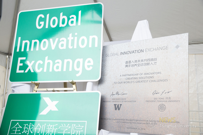 The bronze commemorative plaque is inscribed with dedicatory words from the presidents of both universities. President Qiu says in Chinese: "Facing up to the future challenges of mankind, joining hands to cultivate global innovative talents", and Cauce states that GIX is "A partnership of innovators creating solutions to our world's greatest challenges".