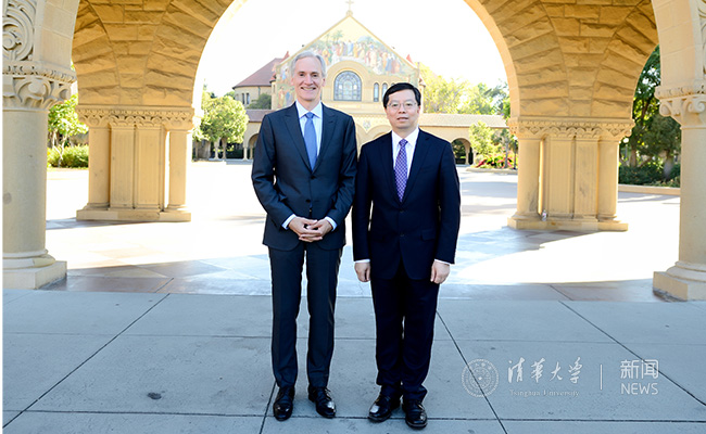 September 28 (Tsinghua News) On September 26 local time, President of Tsinghua University Qiu Yong headed a delegation to Stanford University to meet with President Marc Tessier-Lavigne who has just assumed the post this month, and deliberate over deepening future cooperation between the two institutions and signing a Memorandum of Cooperation.