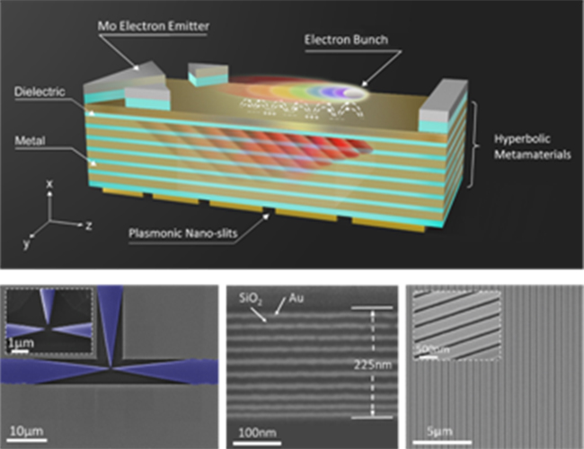 To verify this theoretical result, in the next two years they overcame lots of difficulties in experiment, such as the fabrication of planar electron emitter on chip, the multilayer HMM with thickness of ten nanometers for each layer, the plasmonic nano-slits, and the measurement of CR in HMM. Finally, they succeeded in observing the threshold-less CR by extracting the free electrons from nano-scale Mo tip and having the electrons fly a distance of 200 micron above parallel to the surface of HMM with height of only 40nm. The wavelength of CR ranges from 500~900nm and the electron energy is only 250~1400eV, which is two to three orders of magnitude lower than previous reports. The measured output light power reaches 200nW, which is two orders of magnitude higher than free electron light source by using other nanostructures.