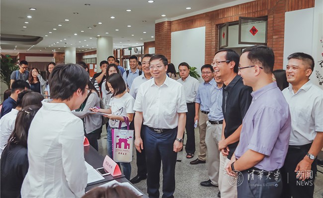 Registration for new graduates took place the preceding day. Tsinghua President Qiu Yong and Tsinghua Vice President Yang Bin greeted and talked with the new students.