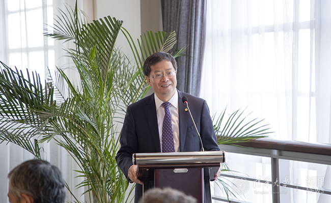 “As we celebrate the 107th anniversary of Tsinghua this year, we are at a transitional phase from the first to the second century in the history of Tsinghua. At this critical turning point, we are reflecting upon our own history and heritage, and thinking about the next step; what should we cherish and what should we change?” asked President Qiu. He explained Tsinghua’s traditions and educational concepts around the two key words of “heritage” and “reform,” and introduced the reform initiatives and important achievements of Tsinghua in recent years. President Qiu noted that Tsinghua carried forward the fine tradition of attaching importance to faculty, and had established a tenure track system in the university. The new system encouraged a batch of young faculty to join Tsinghua, bringing fresh blood to the campus. Based on the university motto of “Self-discipline and Social Commitment,” and the Tsinghua spirit of “Actions Speak Louder Than Words”, Tsinghua proposed a new educational paradigm: the shaping of values, the cultivating of skills and the imparting of knowledge, while vigorously promoting education in innovation and entrepreneurship and focusing on general education. In scientific research, the university has a tradition of addressing the critical challenges of national priority, and now actively promotes interdisciplinary and cutting-edge research. In terms of international cooperation, Tsinghua launched its global strategy in 2016. Tsinghua highly values international cooperation and exchange with its partners around the world.