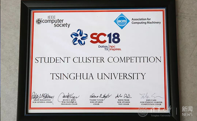The Tsinghua team who took part in the competition are composed of 6 undergraduate students: Yu Jiping, Yu Xinjian, He Jiaao, Zheng Liyan, and Zhao Chenggang, who are all from DCST and Lou Chenyao, from the Institute for Interdisciplinary Information Sciences. Technical support was provided by Cao Huanqi, Feng Guanyu and Wang Miao, graduate students of the Institute of High-Performance Computing in DCST, who have participated in many international competitions. The advisors are Associate Professor Zhai Jidong and Postdoctoral Researcher Han Wentao from DCST. Meanwhile, five undergraduate students: Tang Shizhi, Chen Yu, Gu Yuxian, Chen Shengqi and Zhang Chen, also participated in the training.