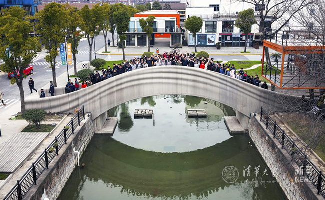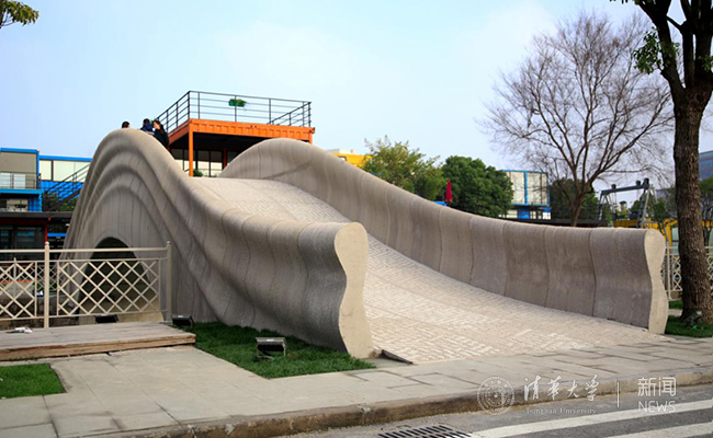 On January 12, 2019, the world's largest concrete 3D printed pedestrian bridge was completed in the Wisdom Bay Industrial Park, Baoshan District, Shanghai. The project was designed and developed by the team of Professor Xu Weiguo from Tsinghua University (School of Architecture) - Zoina Land Joint Research Center for Digital Architecture, and was jointly built with Shanghai Wisdom Bay Investment Management Company.