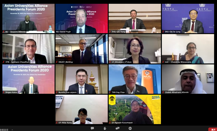The Asian Universities Alliance (AUA) Presidents Forum 2020, jointly organized by the AUA Executive Presidency 2020-2021, Nazarbayev University (NU), and the AUA Secretariat, was held online on November 26.