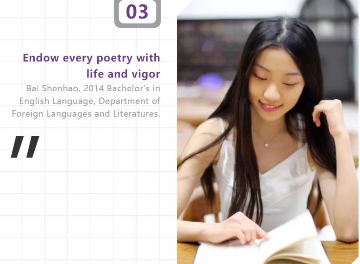 Bai strives to specialize in literary translation, particularly in poetry translation. She says her interest in poetry translation was sparked by a Monte’s painting she came across during her sophomore year.