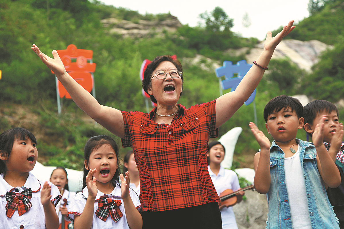 Deng and her young charges sing at the first Malan Children's Music Festival in Fuping in 2013. [Photo by LI XIUQIN/FOR CHINA DAILY]