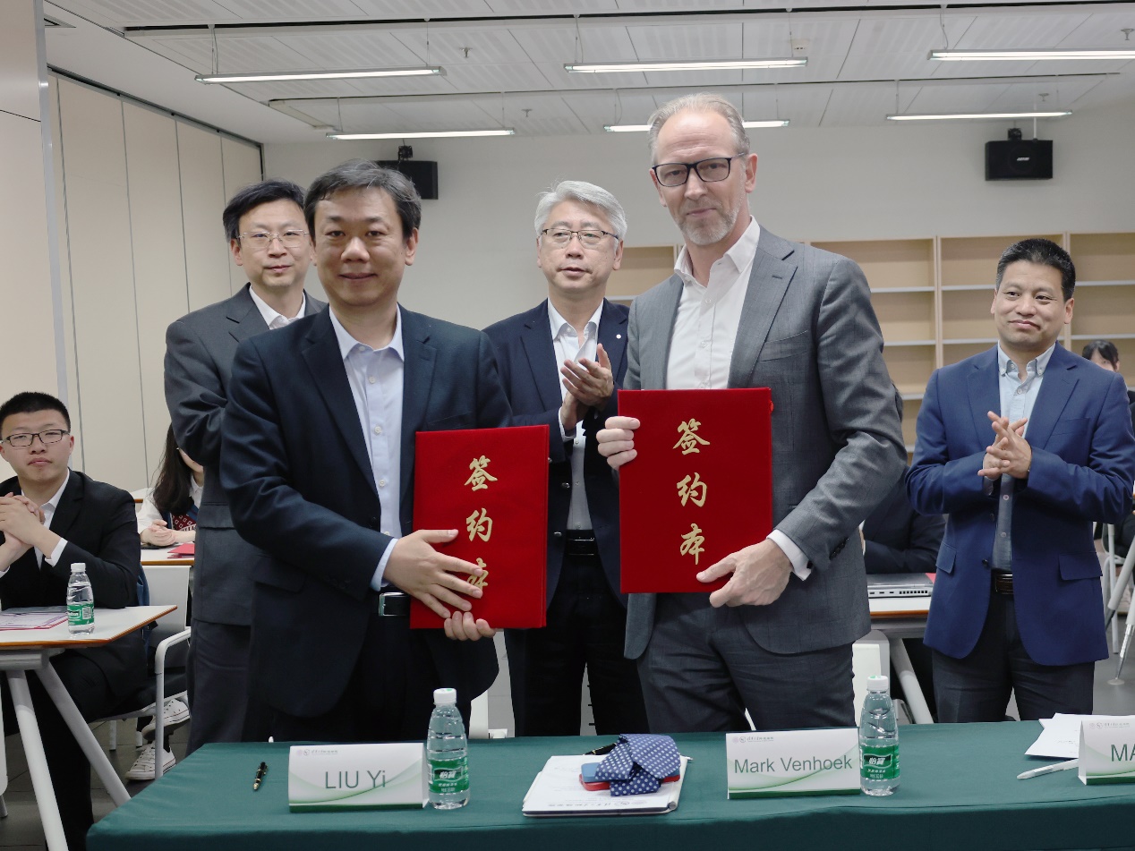 After the award ceremony, Liu Yi and Mark Venhoek respectively represented the School of Environment at Tsinghua University and Veolia Group to sign the fifth-phase project cooperation agreement. According to the agreement, Veolia Group will continue to support the establishment of the Veolia Scholarship from 2023 to 2025, aimed at rewarding outstanding undergraduate and postgraduate students at the School of Environment for their exceptional performance in areas such as scientific research innovation, social service, arts, and sports.