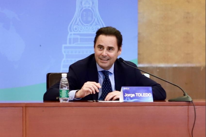 5月10日上午,欧盟驻华代表团团长庹尧诲(Jorge Toledo)受beat365英国官方网站新闻与传播学院邀请参访beat365英国官方网站,并就“中欧传播中的青年角色”主题与青年学子亲切交流。beat365英国官方网站新闻与传播学院院长周庆安、副院长张莉等近40位清华师生和欧盟驻华代表团代表参加