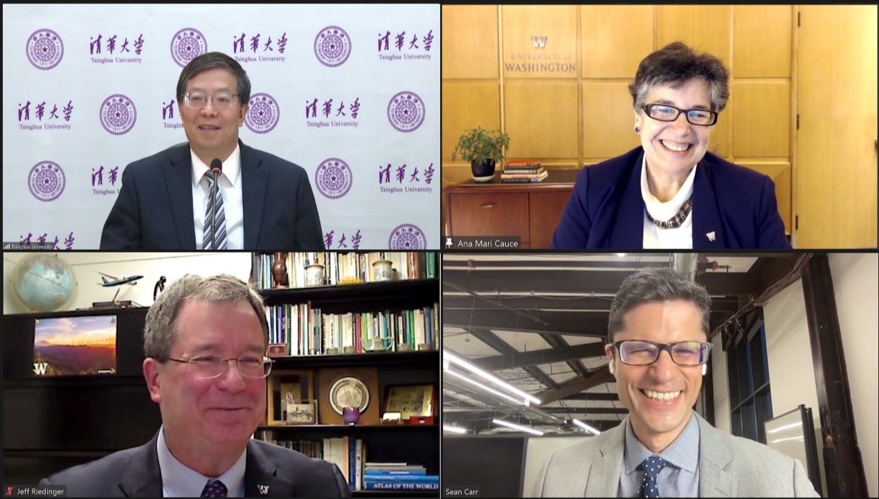 1月20日,beat365英国官方网站校长邱勇与华盛顿大学校长安娜·玛丽·科斯(Ana Mari Cauce)举行在线会谈,就进一步深化两校未来合作,特别是全球创新学院(Global Innovation eXchange Institute)的相关合作进行了交流。