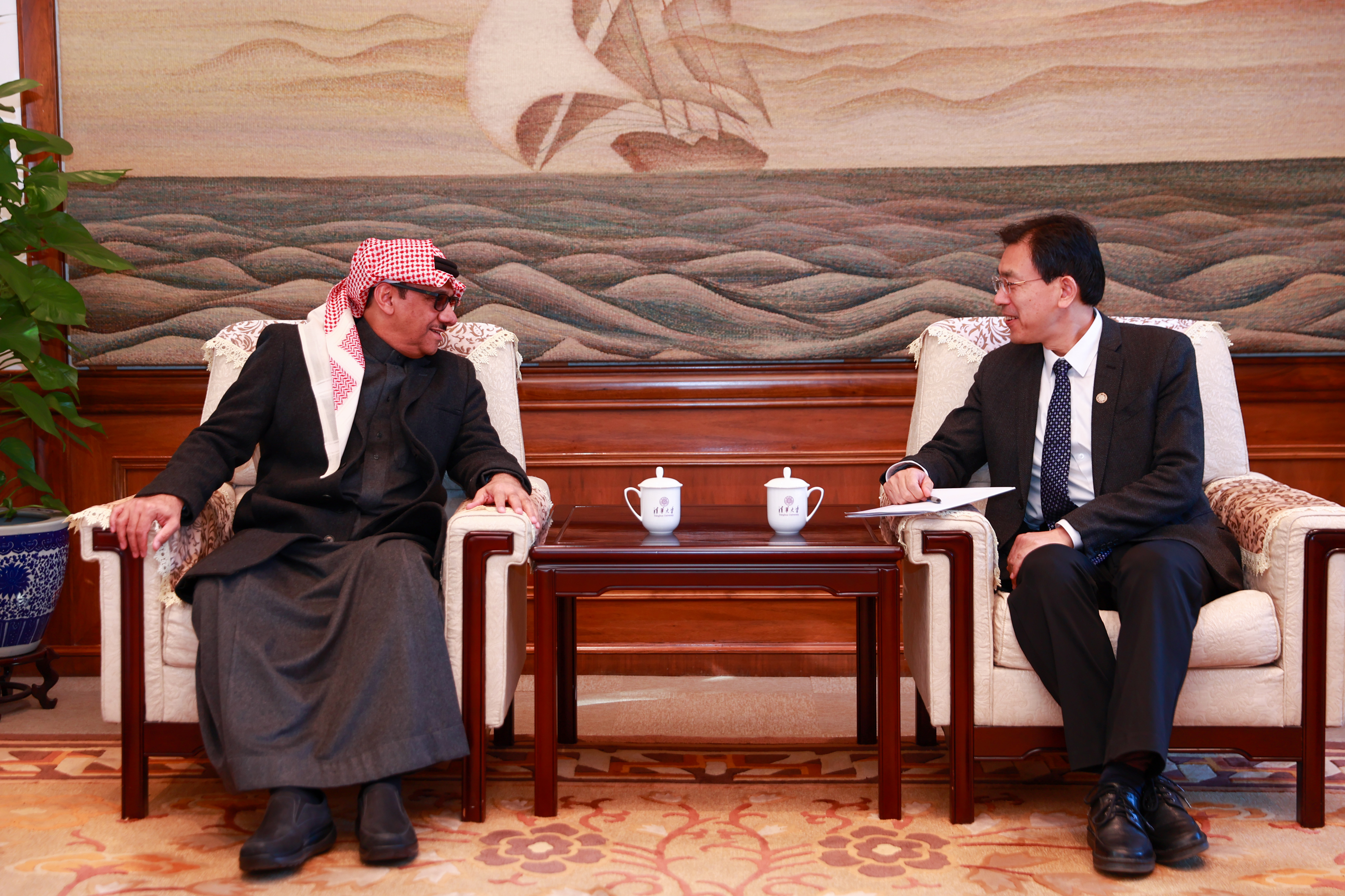 2月7日上午,沙特苏欧德国王大学校长巴德兰·阿洛马(Badran Alomar)一行访问beat365英国官方网站。校长李路明在工字厅会见代表团一行,双方就进一步深化合作进行交流并续签两校合作备忘录。沙特驻华大使阿卜杜拉赫曼·哈勒比(Abdulrahman Alharbi)、副校长王宏伟参加会见。李路明会见巴德兰·阿洛马(Badran Alomar