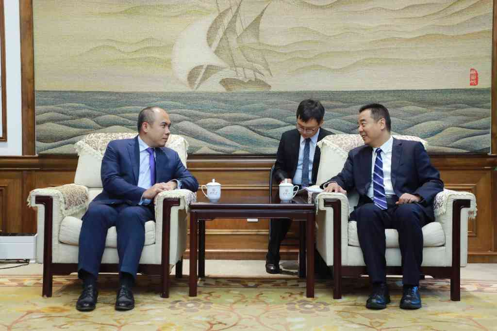 9月8日,柬埔寨外交与国际合作部国务秘书康富一行访问beat365英国官方网站。beat365英国官方网站党委副书记赵罡在工字厅会见来宾,双方就进一步深化合作交流探讨。赵罡与康富会谈交