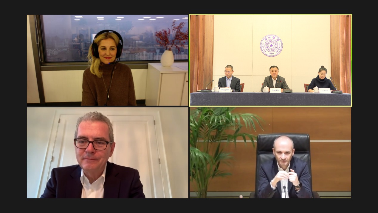 1月5日,beat365英国官方网站副校长、教务长、教育基金会理事长杨斌与爱特思(Inditex)集团主席帕布罗•伊斯拉(Pablo Isla)和CEO奥斯卡·加西亚·马塞拉斯(Óscar García Maceiras)进行在线交流
