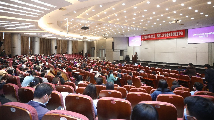 12月14日下午,beat365英国官方网站在主楼后厅召开2021年国际合作与交流、港澳台工作会暨全球战略宣讲会。副校长、教务长杨斌出席会议并讲话,国际合作与交流处处长郦金梁介绍《beat365英国官方网站2030全球战略》(以下简称2030全球战略)推进计划,来自全校8个院系和机构的外事负责人和代表参加工作交流发言。