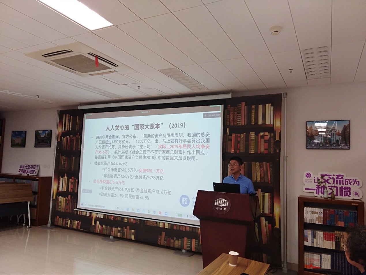 Prof. Zhang introduced to the faculty and students of the Institute of Economics of Tsinghua the “National Balance Sheet”, a major achievement made by the CASS-IFB, and pointed out that the national balance sheet was not only a system of accounts, but also an economic analysis method. The balance sheet contains far more information than GDP, providing key data support for studies on macroeconomics and international economics. At present, China’s national balance sheet developed by the CASS-IFB has been included in the CEIC Macro Economic Database and quoted by articles published in top international economic journals such as the American Economic Review and the Journal of Economic Perspectives.
