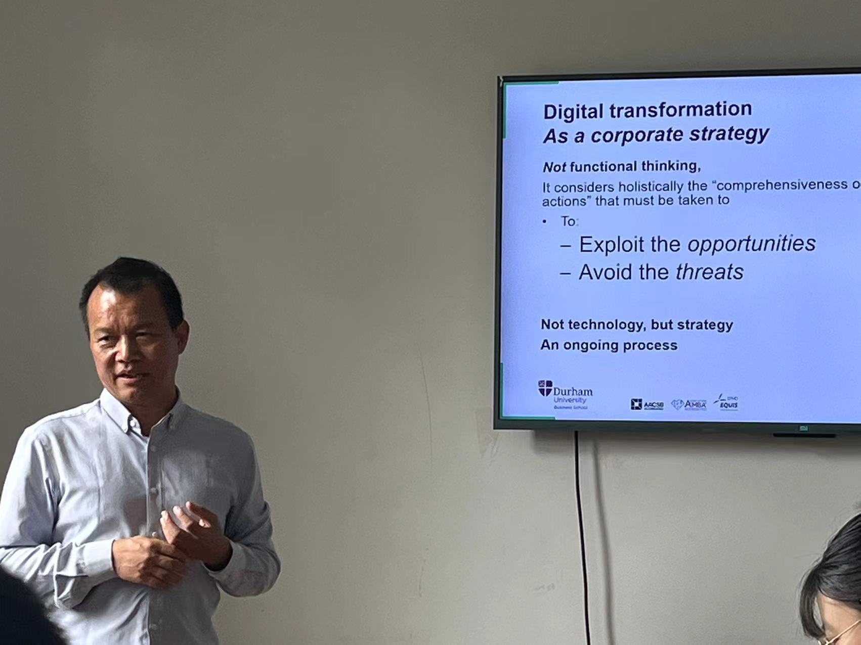 On the morning of April 26, the 120th Session of Chen Daisun Theoretical Economics Lecture, organized by the Institute of Economics of the School of Social Sciences of Tsinghua University was held at Meeting Room 221 inside Mingzhai. Lin Zhibin, Professor & Ph.D. Supervisor at Durham University Business School & Director of the Centre for Consumers and Sustainable Consumption, gave an academic lecture entitled "Strategic Impact of Intergenerational Succession on Digital Transformation". Professors Long Denggao and Rong Ke, Associate Professor Li Hongjun, Assistant Professor Xu Zhihao and Emeritus Professor Gao Shujuan as well as more than 20 students from the Institute of Economics attended the lecture and had heated discussions. Prof. Rong Ke from the Institute of Economics presided over the lecture and discussions.