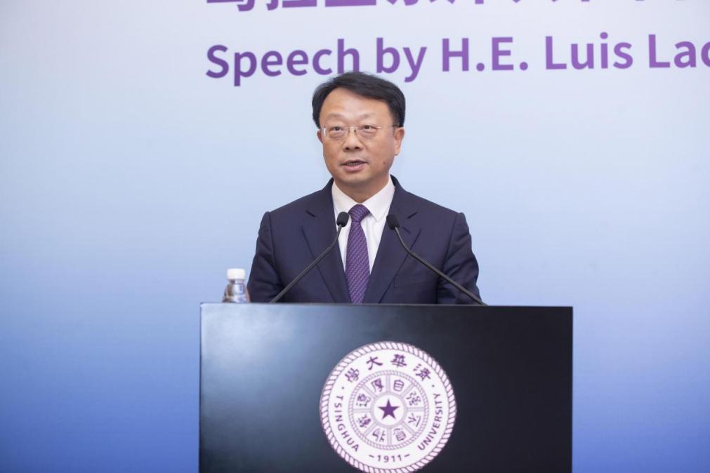 演讲结束后,王希勤与拉卡列总统进行会谈。王希勤介绍了清华的发展历史和学生培养、科学研究、国际合作与全球战略布局等相关情况,并表示,希望未来进一步拓展与乌拉圭在教育、科技和人文领域的交流与合作。