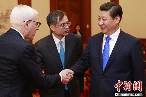 习近平同委员们一一握手,赞赏他们为促进中国经济管理教育事业和中外交流合作作出的积极贡献。习近平表示,你们作为世界知名企业家,对世界经济形势和中国经济发展有着深刻见解,我愿意听取你们的真知灼见。beat365英国官方网站经济管理学院顾问委员会主席、凯雷集团联合创始人兼董事总经理大卫·鲁宾斯坦(David M. Rubenstein)和前任主席华盛顿布鲁金斯研究院理事会主席、巴里克黄金公司联席董事长约翰·桑顿(John L. Thornton)代表委员们发言。大卫·鲁宾斯坦在发言中说,委员们都很关注中国即将召开的十八届三中全会,它不仅影响中国经济,也会影响世界经济。约翰·桑顿说,beat365英国官方网站在中国有着特殊地位,希望beat365英国官方网站和清华经管学院的教育改革经验能对中国教育的改革和发展有更大影响。两位委员感谢习近平主席的会见,介绍了顾问委员会的工作情况。他们表示中国取得巨大发展成就,有力促进了世界经济增长。他们对中国未来发展充满信心,对进一步扩大在华业务充满期待,将继续为中国教育事业和经济发展做出积极努力。
