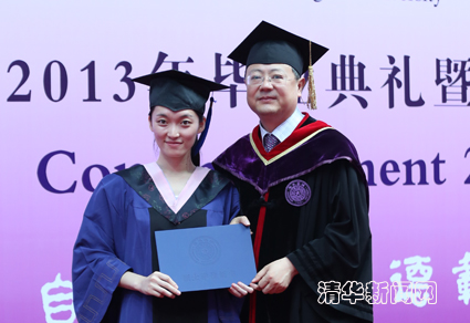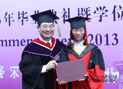 图为陈吉宁校长向毕业生授予学位。记者 智 斐 摄