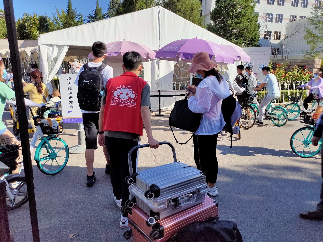新生入校后,学生仍要求每日测温并使用“清华紫荆”小程序扫码出入宿舍、食堂、教学楼、图书馆等场所,新生领取入学密码封后,可以第一时间激活自己的账号密码,使用“清华紫荆”小程序,拥有属于自己的紫荆码。校学生会还制作了“防疫小贴士”折页,在迎新时发放至新生手中,方便更快掌握校园防疫要求,帮助新生们适应校园生活,养成良好的卫生习惯。