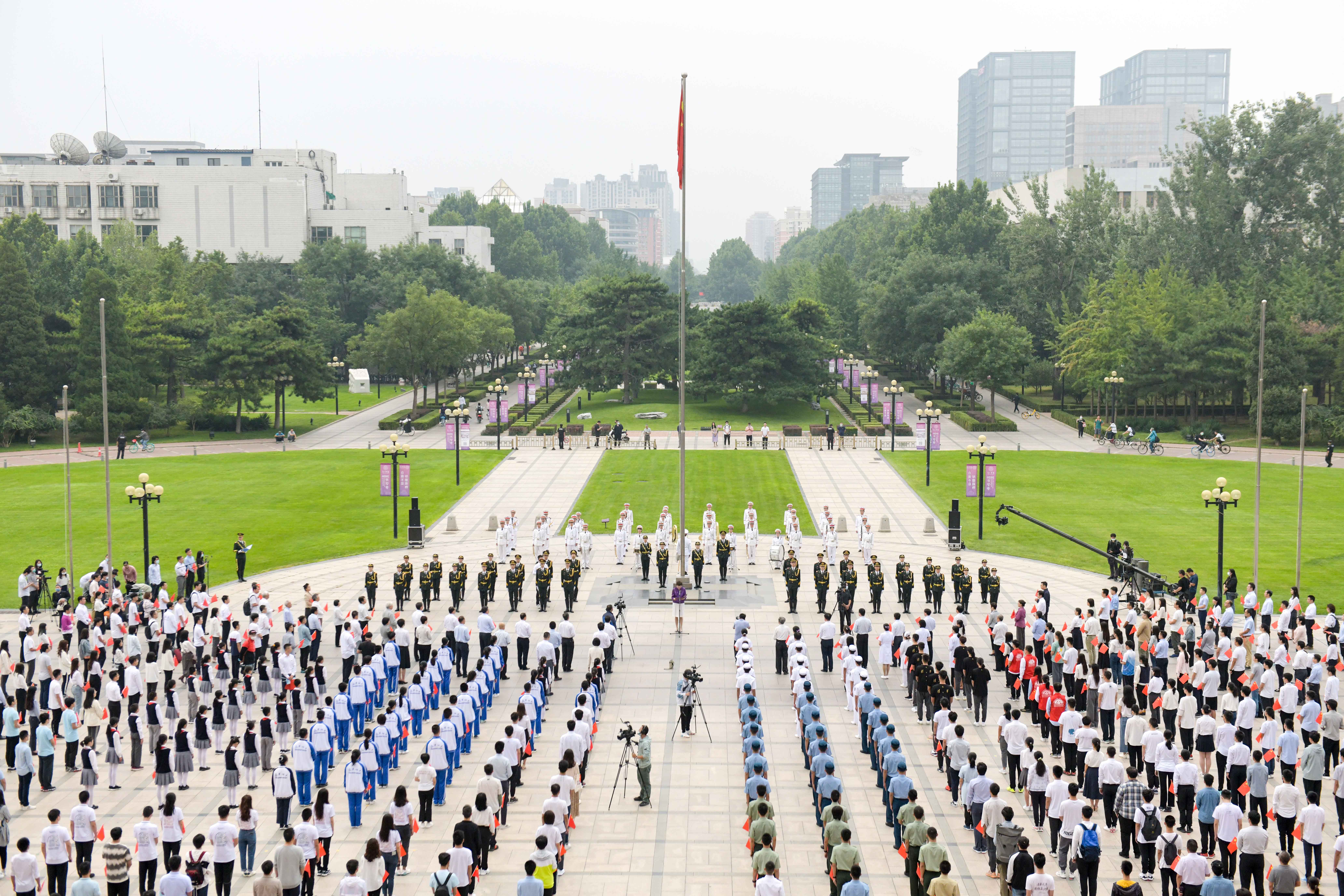 今天,我们致敬五星红旗,与国旗一同升起的,还有对新时代、新学年的无限向往。未来,我们继续谱写青春华章,在金秋的清华园重新出发,以优异的成绩为国旗增辉!