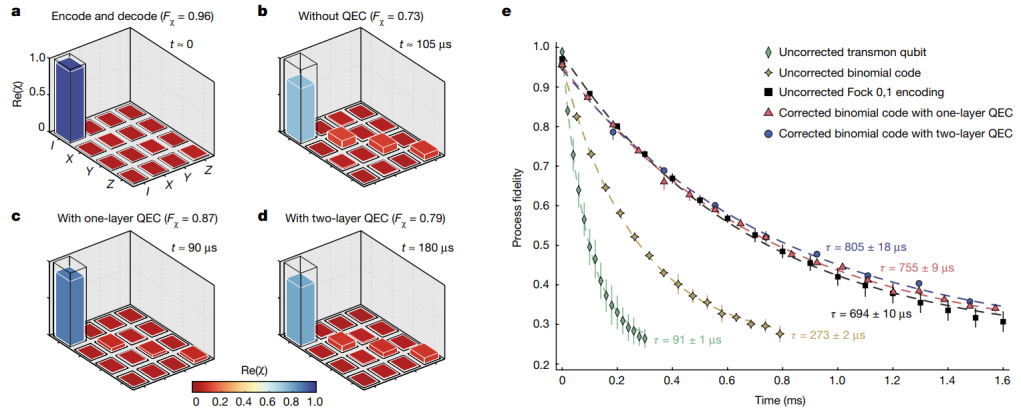 近日,相关研究成果以“用离散变量编码的逻辑量子位打破盈亏平衡点”(Beating the break-even point with a discrete-variable-encoded logical qubit)为题在线发表在国际顶尖学术期刊《自然》(Nature)上。
