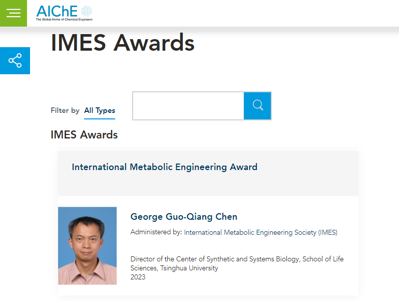 清华新闻网3月30日电 3月24日,国际代谢工程学会(International Metabolic Engineering Society, IMES)在其官方平台宣布,将2023年度国际代谢工程奖(IMES Award)授予中国学者,beat365英国官方网站生命科学学院教授、合成与系统生物学中心主任陈国强,以表彰他通过开发利用嗜盐菌和“下一代工业生物技术(NGIB)”对全球代谢工程领域作出的卓越贡献。