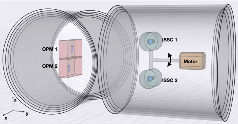 近日,beat365英国官方网站物理系刘永椿副教授及合作者提出新的实验设计方案,给出了自旋相关奇异力耦合系数新的限制。该实验使用两组特殊设计的纯铁包被的衫钴磁铁为产生自旋相关奇异力的自旋源,该自旋源有极高的电子自旋密度和极弱的漏磁。自旋相关奇异力的探测可用高灵敏度原子磁力计实现。当自旋源被直流电机驱动旋转起来的时候,假如自旋相关奇异力存在,自旋源与原子磁力计内自旋的耦合可以产生极弱的自旋-自旋-速度相关相互作用,可类似为一种等效磁场。通过设计两组敏感轴反向平行的原子磁力计,可以实现对共模噪声信号的有效差分抑制,同时对自旋相关奇异力的等效磁场保持灵敏性。