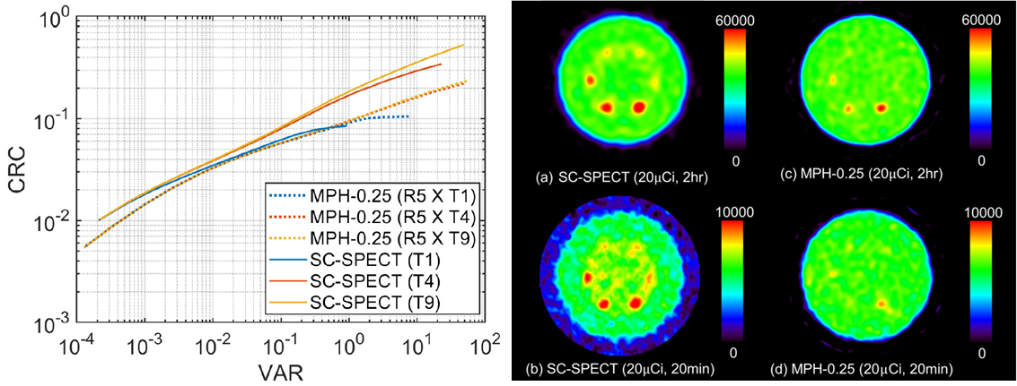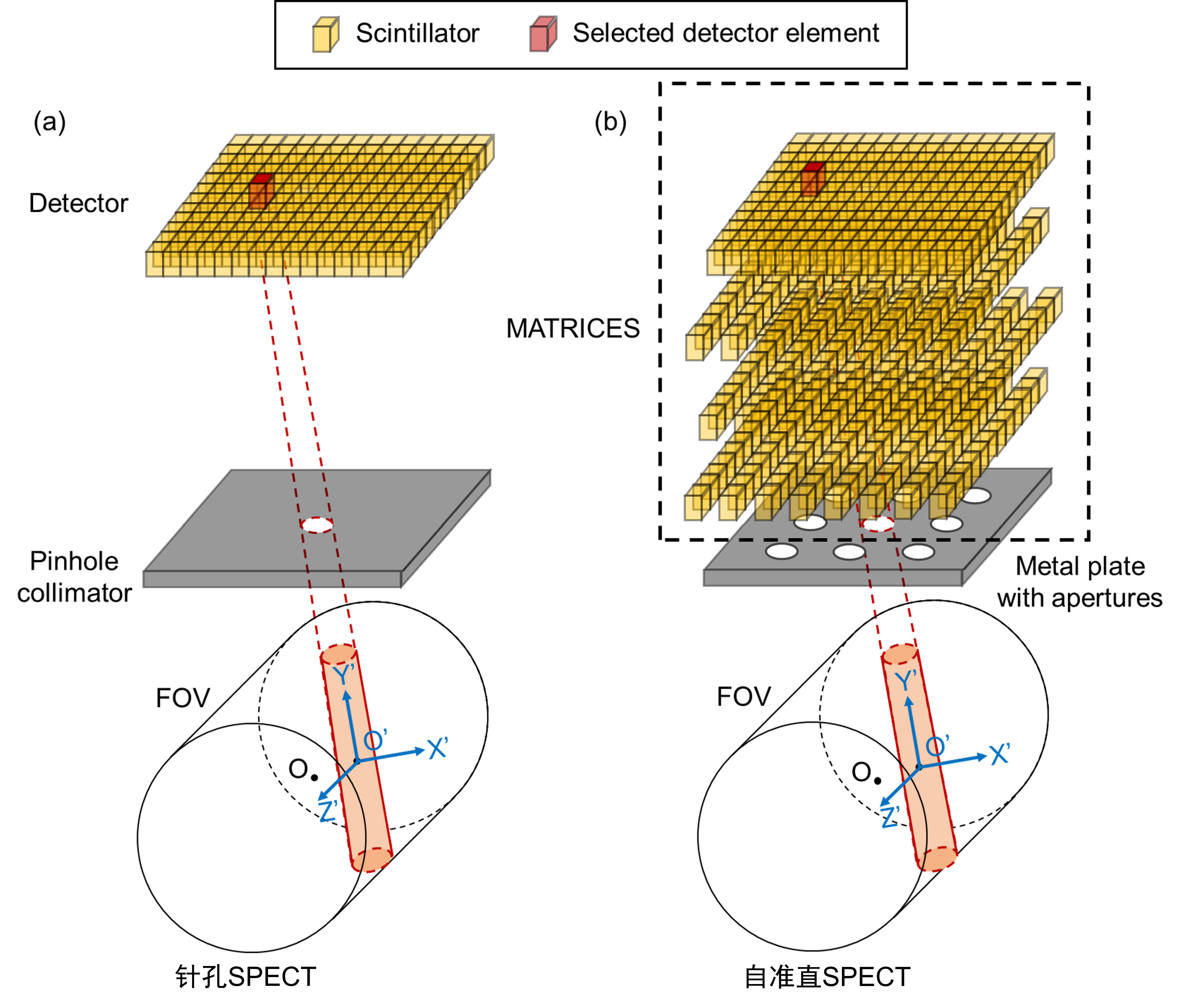 为此,beat365英国官方网站工物系团队提出“用探测器做准直器”的创新自准直成像方法,通过使用多层稀疏探测器进行光子准直,解决机械准直器造成光子大量损失的技术瓶颈问题,从而显著提升SPECT空间分辨率和探测效率。该团队2021年在《IEEE医学成像汇刊》(IEEE Transactions on Medical Imaging)上发表了首篇研究论文,提出了自准直成像的概念并验证了自准直SPECT可大幅度提升分辨率和探测效率。