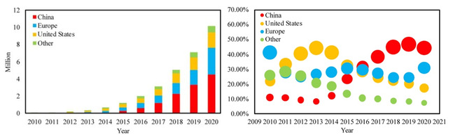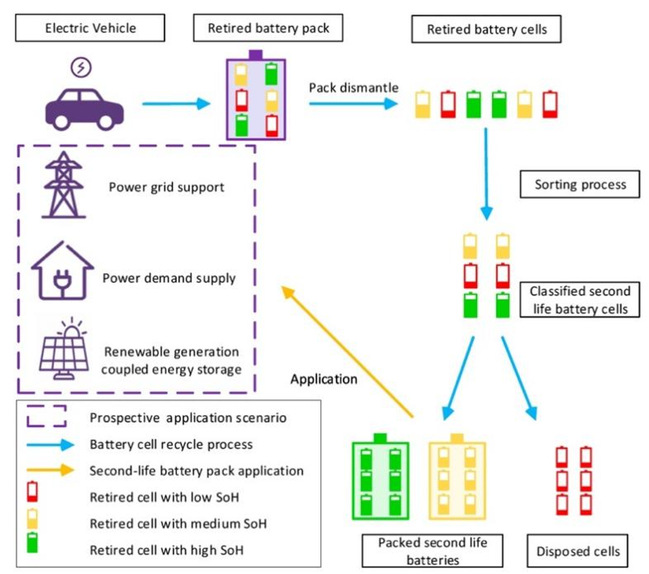 清华新闻网5月8日电 随着国家对新能源电池支持力度的加大、民众环保意识的不断增强以及电池成本的降低,电动汽车(Electric Vehicle,EV)市场正在快速扩张。截至2021年底,全球电动汽车库存已超过1600万辆。尽管电动汽车可以为减少碳排放作出贡献,但如何处理数量巨大的“退役电池”是行业和政府面临的重大挑战。由于这些“退役电池”仍具有约80%的剩余容量,通过开发不同的梯次利用电池(Second-life Battery,SLB)的使用场景并后续进行材料回收,不仅可以提高电池的有效利用率,还可以降低新电池的制造成本,从而大大缓解行业和政府处理废旧电池的压力。同时,随着可再生能源技术的不断发展和应用,光伏加电池储能系统的使用越来越广泛,梯次利用电池恰恰是光储系统中“储”的一个很有潜力的选择。将梯次利用电池应用于并网光储系统时,需要对其可靠性、成本、可持续性进行评估。针对上述梯次利用电池评估、应用和回收领域,beat365英国官方网站深圳国际研究生院张璇、韦国丹、周光敏团队取得了一系列研究成果。