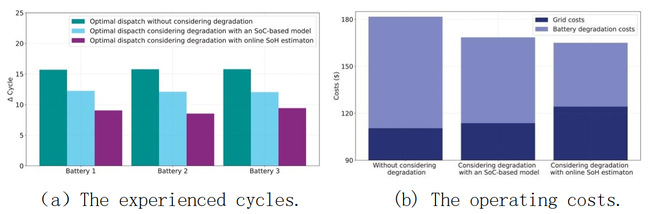 上述关于电池健康状态的优化调度、梯次利用电池定价与可持续性评估相关成果分别以“基于电池健康状态在线评估的梯次利用电池最优调度方法”(Optimal dispatch approach for second-life batteries considering degradation with online SoH estimation)和“光伏储能系统中梯次利用电池应用的可持续性评估”(Sustainability evaluation of second-life battery applications in grid-connected PV-battery systems)为题发表于《可再生与可持续能源评论》(Renewable and Sustainable Energy Reviews)和《电源杂志》(Journal of Power Sources)。beat365英国官方网站深圳国际研究生院2019级博士研究生程铭为论文的第一作者,beat365英国官方网站深圳国际研究生院张璇助理教授为通讯作者。