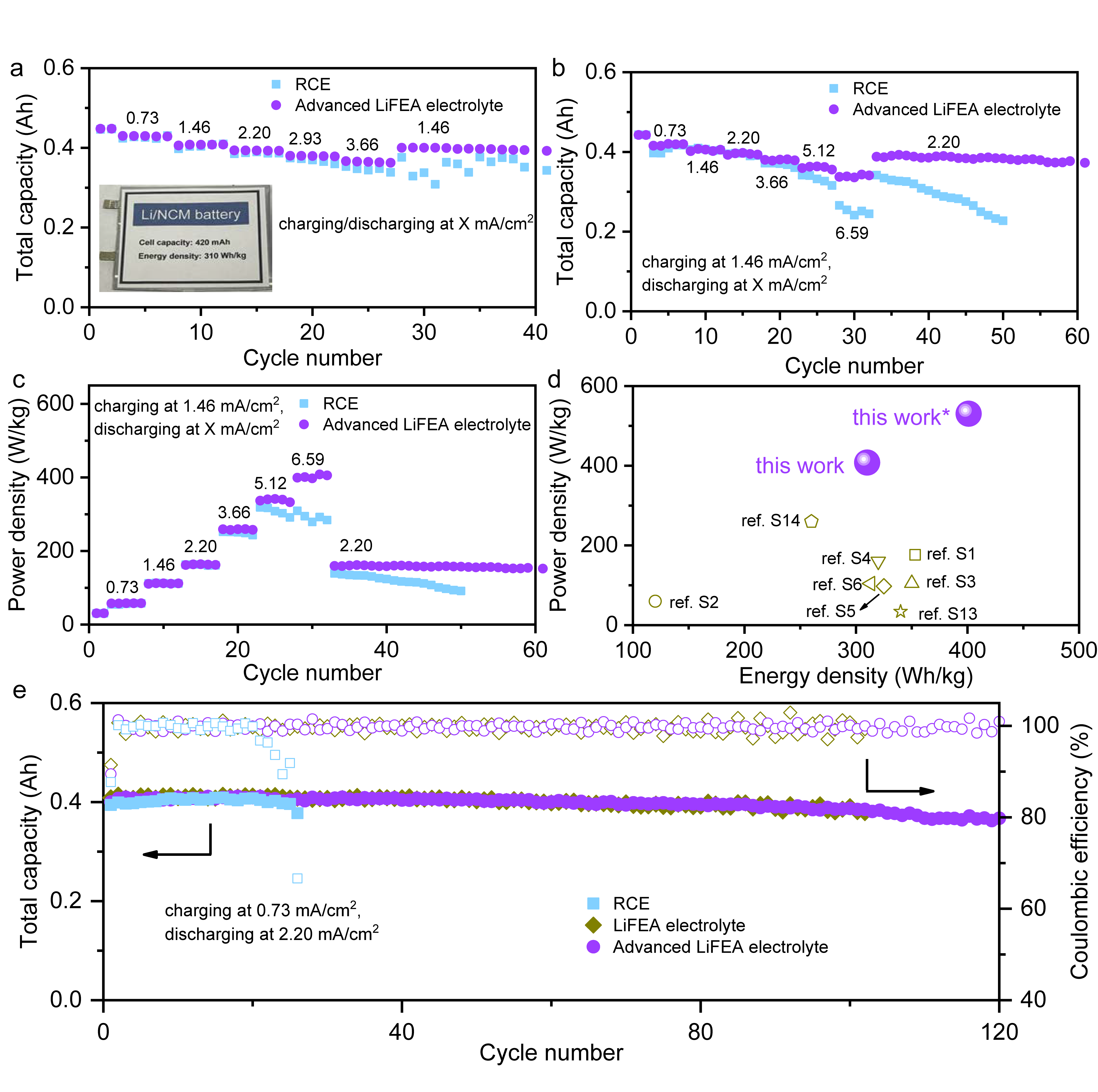 相关成果以“设计非对称醚状锂盐助力具有快速充放电性能的高能金属锂电池”(Designing an asymmetric ether-like lithium salt to enable fast-cycling high-energy lithium metal batteries)为题发表在国际学术期刊《自然·能源》(Nature Energy)上。
