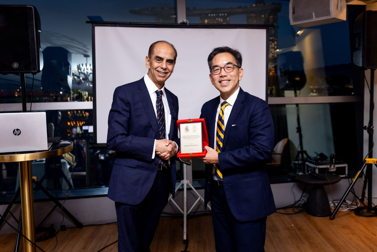 黄天荫(右)获2023年新加坡医师科学家学院转化研究杰出贡献与成就奖