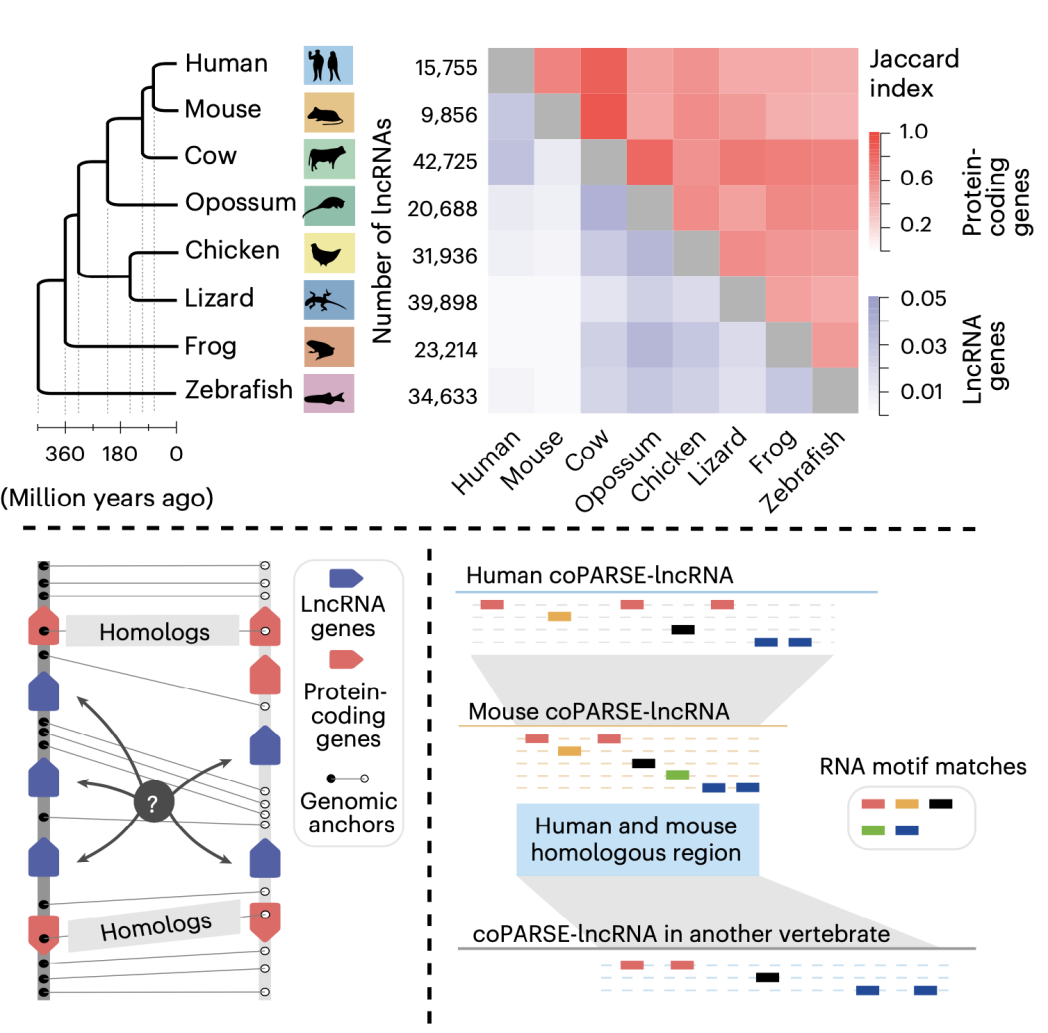 清华新闻网1月31日电 长非编码RNA(lncRNA)的发现和表征是过去几十年分子生物学领域的重大进展。已有研究成果表明,lncRNA在发育、肿瘤等多种生理和疾病过程中发挥调控作用,但目前绝大多数lncRNA的功能仍然未知。通过鉴定不同物种间同源的lncRNA,可以筛选出在进化过程中保守的lncRNA,这些lncRNA也更可能具备重要的功能。但是,由于lncRNA的序列保守性较低,传统的序列比对方式只能鉴定出极少的不同物种间同源的lncRNA。例如,在斑马鱼和人类上万的lncRNA基因中,通过序列比对只能找到几十个序列保守的同源lncRNA。因此,不管是从lncRNA的理论还是技术方面考虑,目前都亟需一种新的方法来鉴定不同物种之间的同源lncRNA。