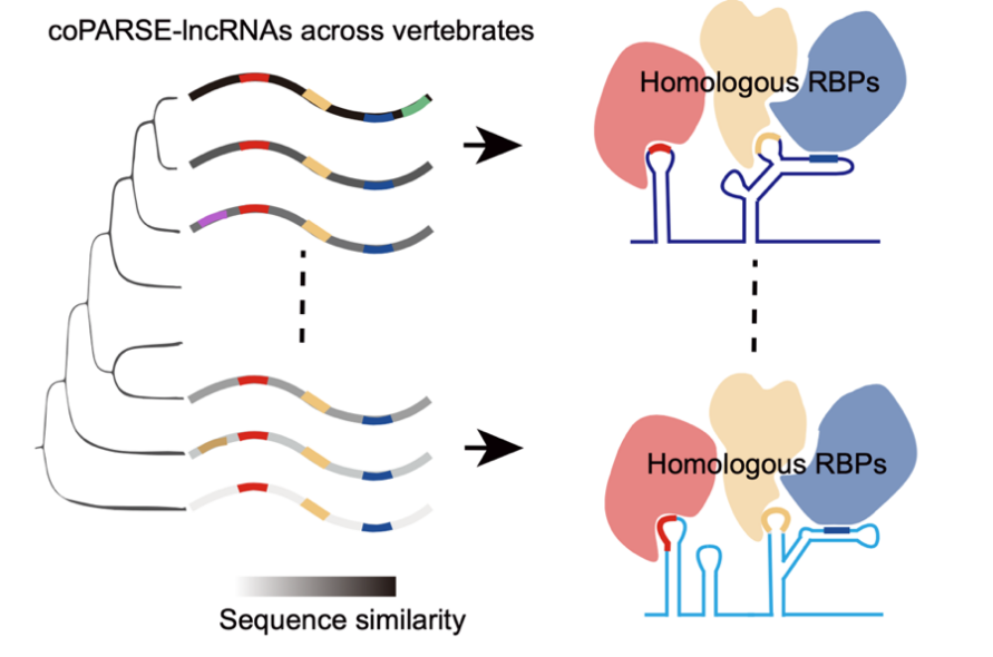 总而言之,团队的研究提供了一个基于机器学习的计算分析方法,鉴定得到了一系列在脊椎动物中潜在同源的lncRNA,并通过实验验证了同源lncRNA的功能保守性。这些lncRNA在进化过程中序列保守性逐渐消失,但是却保留着保守的RBP结合模式(图2)。该工作极大地扩展了当前脊椎动物中保守的lncRNA库,为研究lncRNA的进化、功能及作用机制提供了新视角和新资源。