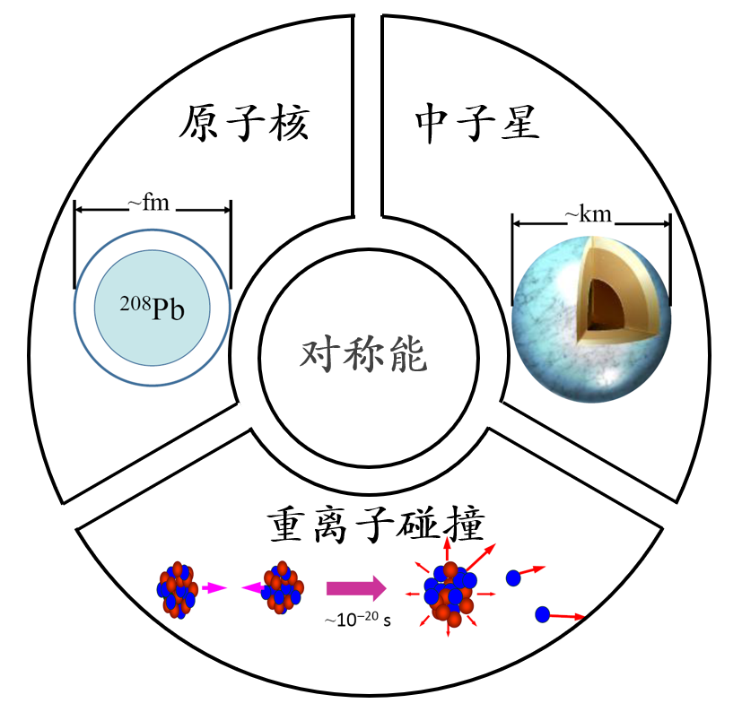 众所周知,原子核是由质子和中子组成的。自然界中稳定存在的原子核,它们的中子数和质子数是大致平衡的。而当原子核内中子和质子数目偏离平衡时,体系就逐渐变得不稳定,描述这一现象的物理量,就是对称能。正是对称能这个物理量,它像一座桥梁,联系着原子核和中子星这两个尺寸上相差18个数量级的物理系统,成为国际上核物理学家们关注的一个焦点。