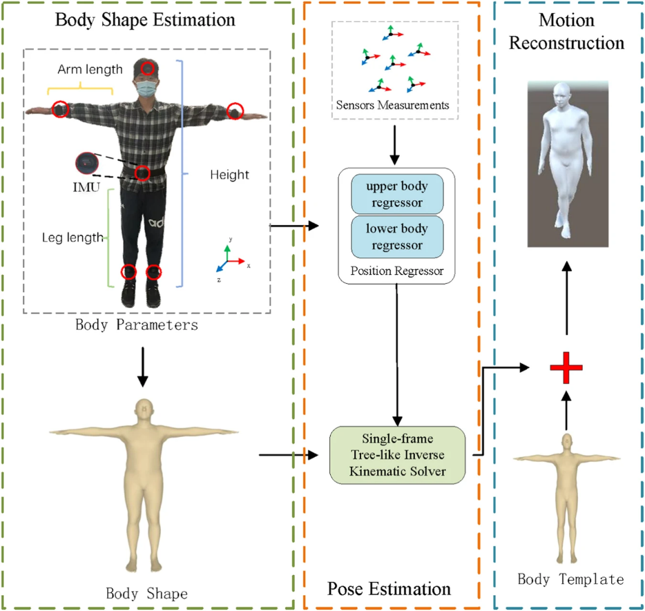 相关研究成果以“基于稀疏传感器考虑人体形状快速重建人体运动”(Fast Human Motion reconstruction from sparse inertial measurement units considering the human shape)为题,于3月18日发表于《自然·通讯》(Nature Communications)杂志。
