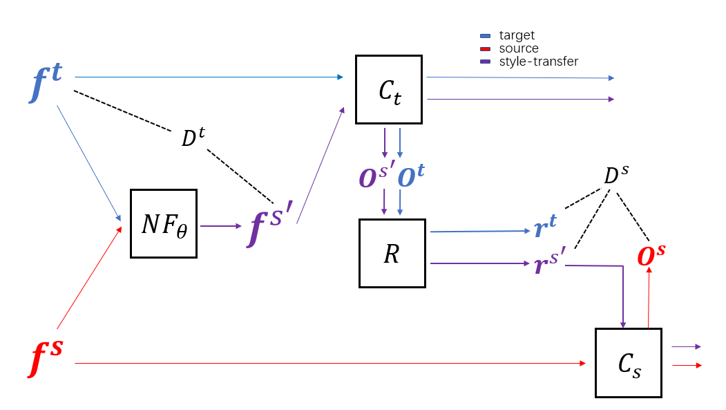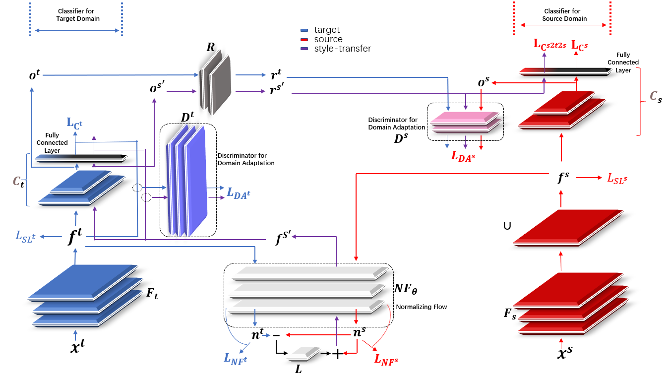 近日,beat365英国官方网站深圳国际研究生院李星辉副教授团队受视觉任务中以CycleGAN为代表的风格迁移以及领域自适应中的条件对抗方法启发,构建了从弱相关时间序列分类数据集进行迁移学习的架构。该架构在考虑源域和目标域间的差异以及因此而可能产生的负迁移的基础上,将源域和目标域分类器分别搭建,通过在不同深度的表征层上进行对齐操作并借助归一化流生成同时带有目标域与源域特征的表征,实现了源域到目标域的迁移。由于在新表征的生成上以及计算的全流程上与风格迁移有相似之处,因而命名方法为特征层风格迁移。
