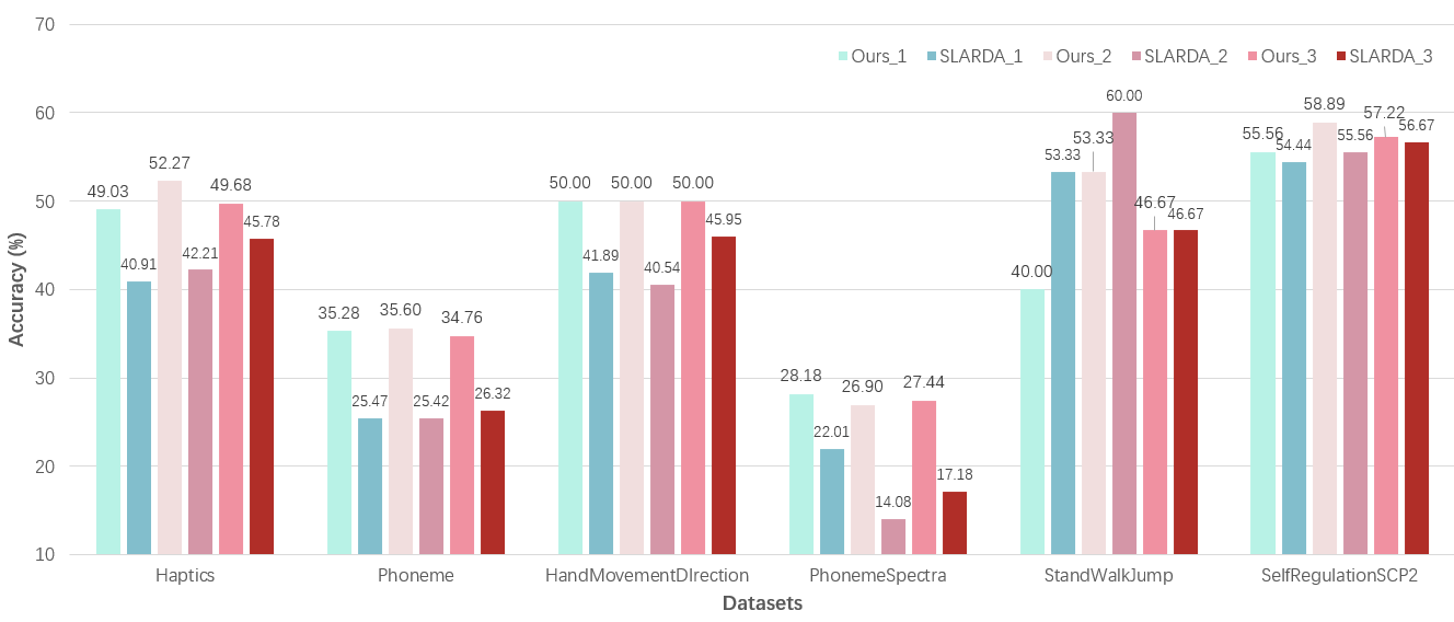 清华新闻网7月12日电 随着信息技术的发展和算力的提高,深度学习时间序列分类模型的实现变得愈发复杂和精巧。但对于一些特定的领域下的时间序列分类数据集而言,可能存在由于样本较为缺乏而导致训练出的深度学习分类器泛化能力不足的问题,并且时间序列领域的数据由于各时间点间的依赖需要被充分考虑,进而导致相应的数据增强技术在很多场景下存在训练困难的情况。由于不同时间序列分类领域的实验成本、数据采集条件不同,对于一个特定的样本缺乏的目标域分类任务,如果能够借助广泛存在的与之在标签集上、长度、通道数等方面均存在差异的数据集作为源域数据集并尝试进行迁移学习,以增强目标域分类器的泛化能力和分类性能,将会在一些分类场景下发挥一定作用。