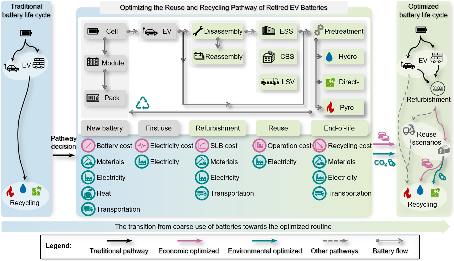 清华新闻网9月10日电 随着全球电动汽车销量的迅速增长,退役电池的有效管理日益重要。不当处理退役电池可能导致环境污染、资源浪费、废物管理压力增加、能源安全性降低和供应链风险加剧等问题。为应对这些挑战,科学界和工业界正在积极倡导对退役电池进行再利用和回收。