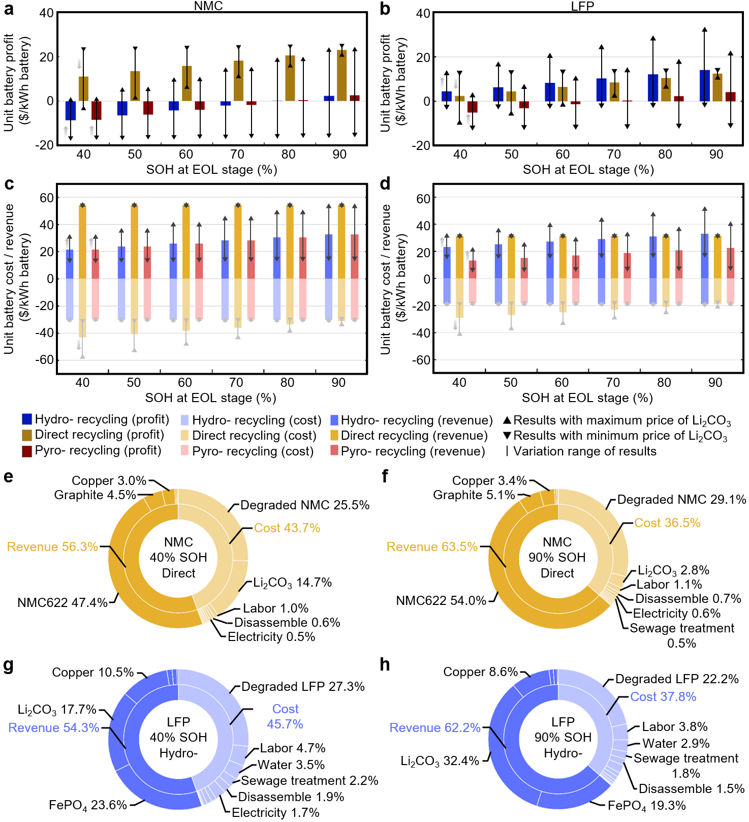 图3.不同回收方法在电池生命周期终止阶段的经济性能
