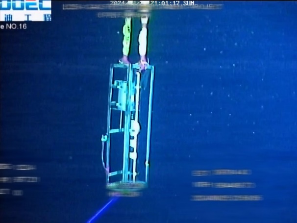 ROV操控屏幕中的仪器水下下放图(上)和仪器现场工作图(下)